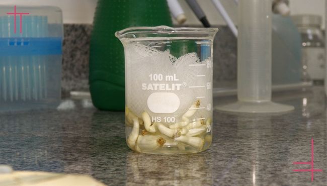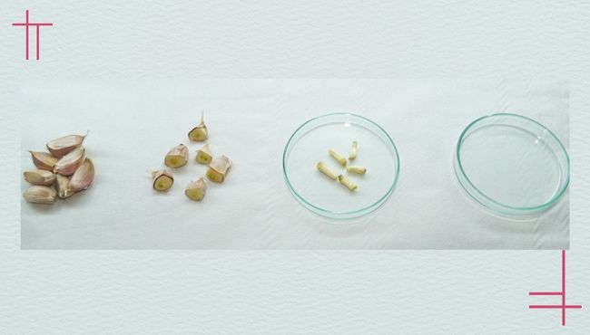 É iniciada pela termoterapia, quando os bulbilhos selecionados são mantidos em estufa com temperatura controlada de 37°C por 30 a 40 dias, dependendo da variedade. Esse tratamento visa eliminar grande parte dos vírus presentes nos bulbilhos. Para as variedades de alho nobre, após a termoterapia, os bulbilhos seguem para a vernalização, necessária para induzir a formação de bulbos. É importante destacar que a termoterapia é mais eficiente contra algumas espécies de vírus do que outras. Posteriormente, realiza-se o cultivo in vitro dos meristemas - pontos de crescimento vegetal de difícil acesso pelos vírus, com o objetivo produzir microbulbos. O processo inicia com a retirada do explante dos bulbilhos, que passa por desinfecção rigorosa para eliminar patógenos presentes na superfície, seguida da extração do meristema, que são então colocados em meio de cultura até a formação dos microbulbos. Essa etapa é realizada em laboratório especializado em cultura de tecidos.