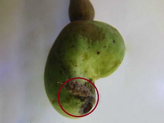 Entre as principais pragas que afetam cajueiros com copa substituída destaca-se a broca-do-tronco (Marshallius sp.). É importante monitorar o pomar para verificar a presença dessa e de outras pragas da cultura. Caso seja confirmada a ocorrência de alguma praga no tronco e/ou brotações das plantas, o controle deve ser iniciado imediatamente, com uso dos mesmos produtos e dosagens recomendados para pomares clonais de cajueiro.