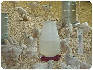 As aves deverão ter acesso imediato à agua e ao alimento já disponíveis no círculo de proteção montado. Um pouco de ração pode ser depositado sobre o papel no círculo para estimular o consumo.