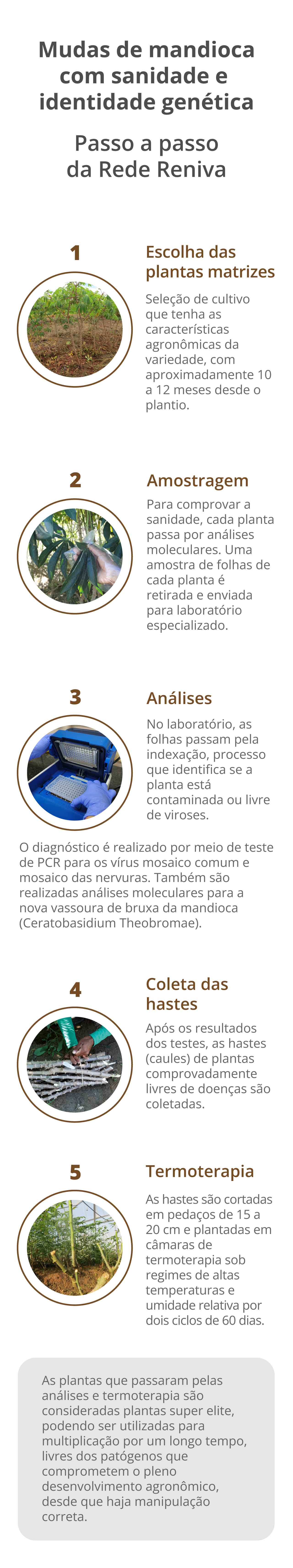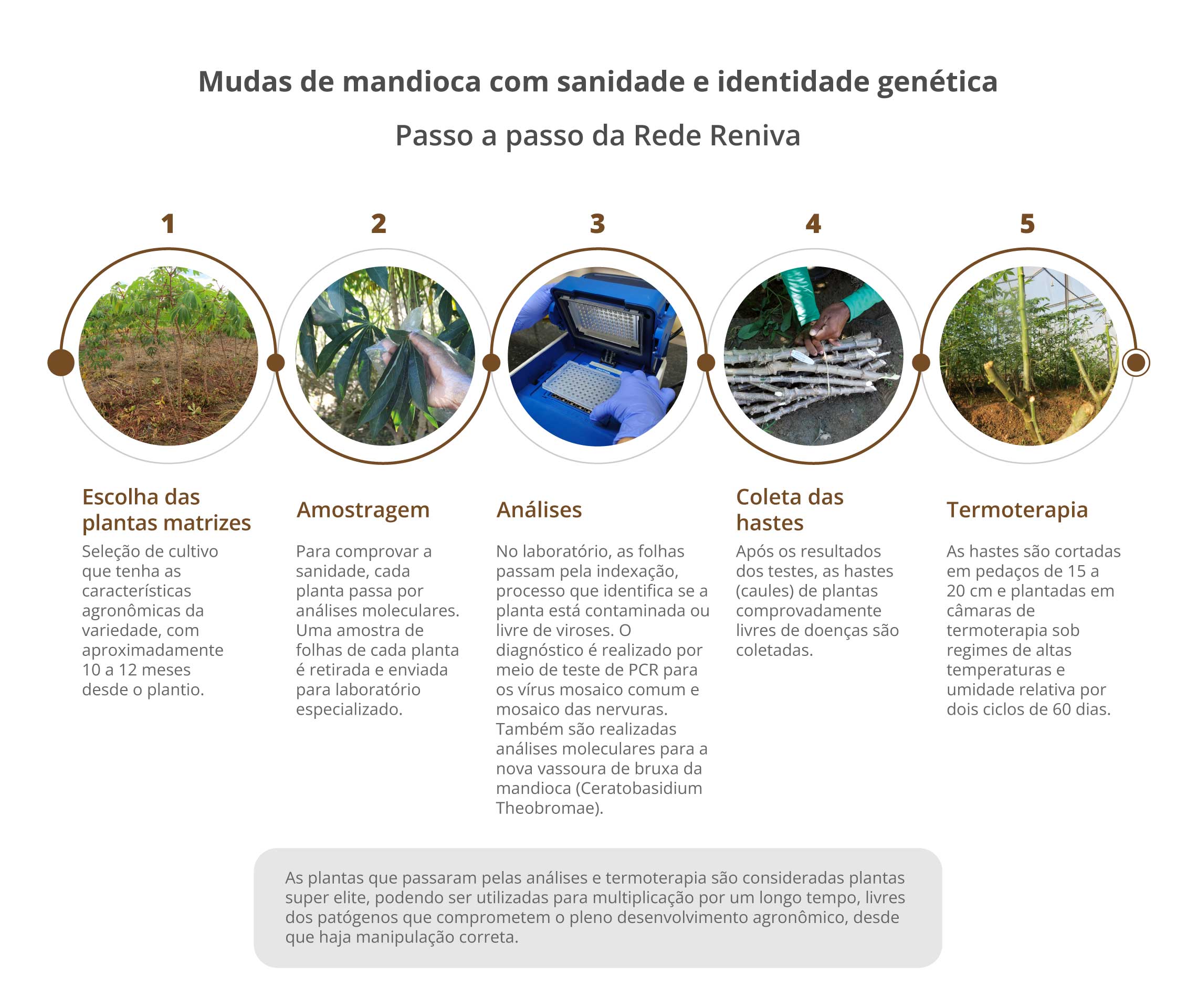 - recorrer a Rede Reniva (Rede de multiplicação e transferência de material propagativo de mandioca com qualidade genética e fitossanitária).